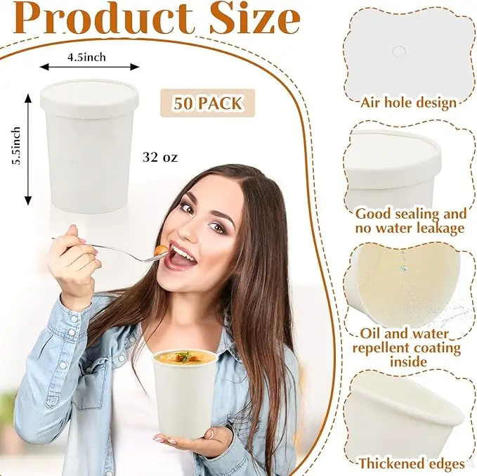 32 oz Paper Soup Container with Lid Disposable Cowhide Soup Food Bowl Microwave Food Storage Ice Cream Container (White) 32 oz Paper Soup Container with Lid Disposable Cowhide Soup Food Bowl Microwave Food Storage Ice Cream Container (White)