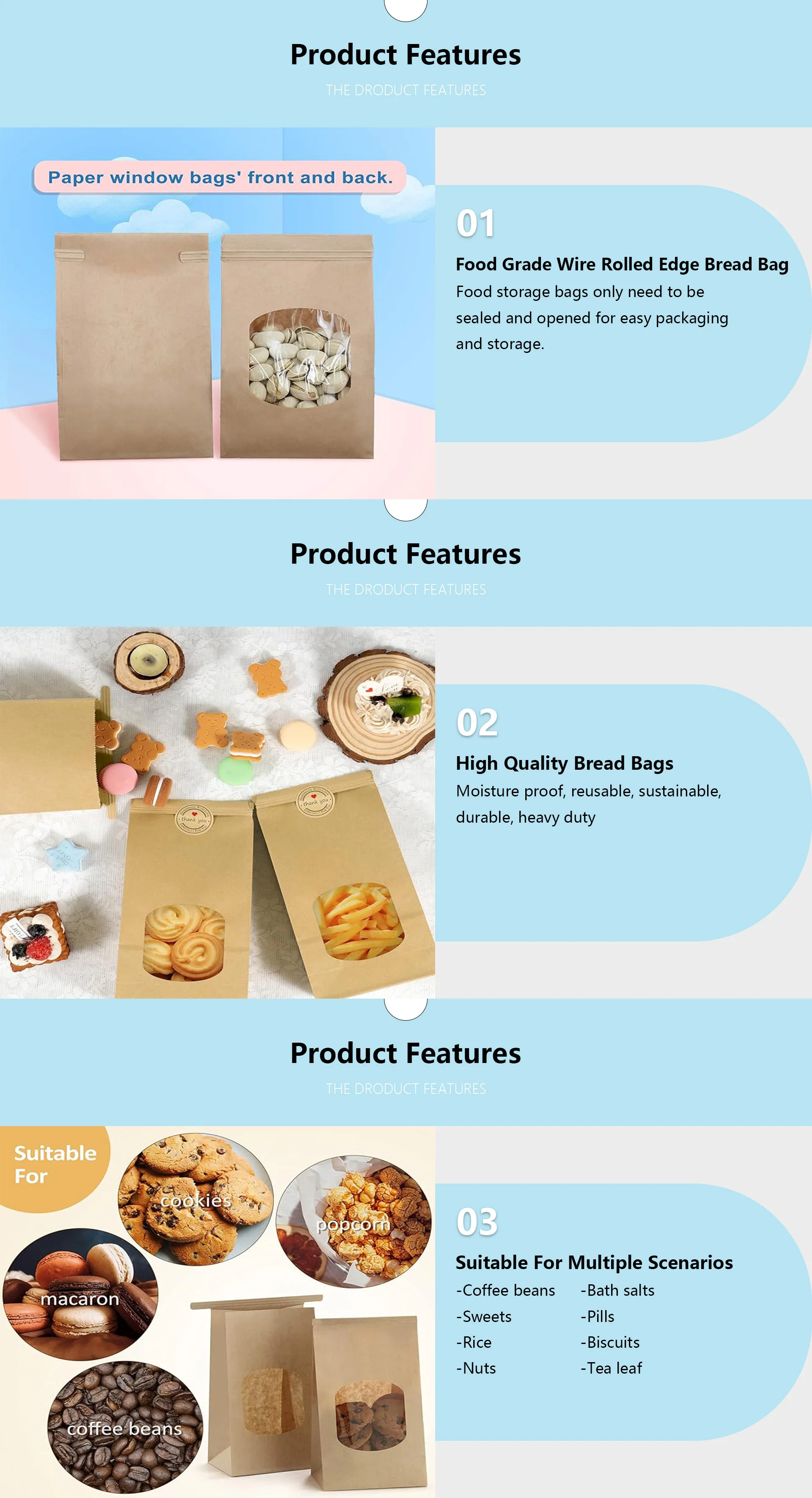 Customizable LOGO with Window Accessory Bag for Storing and Packing Homemade Bread in Bakery Bread Bags