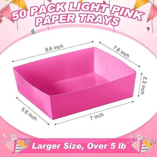 Disposable Paper Food Tray 5 lb Large Food Boat Nachos Thanksgiving Christmas Party Supplies (Hot Pink)