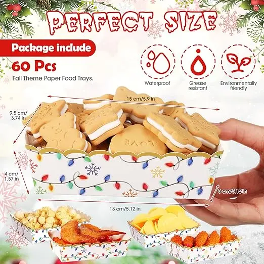 Home » Products » Food Trays Plaid Lights Nutcracker Disposable Christmas Paper Boat Nachos Hot Dog Party Supplies (Bright, Holiday Lights)