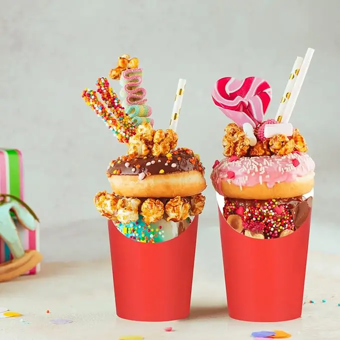 French Fries Holder, 12 oz Disposable Paper French Fries Cup, Birthday Pie Waffle Popcorn Deli Cup French Fries Cup