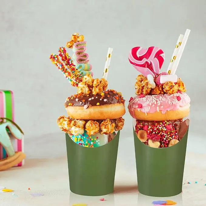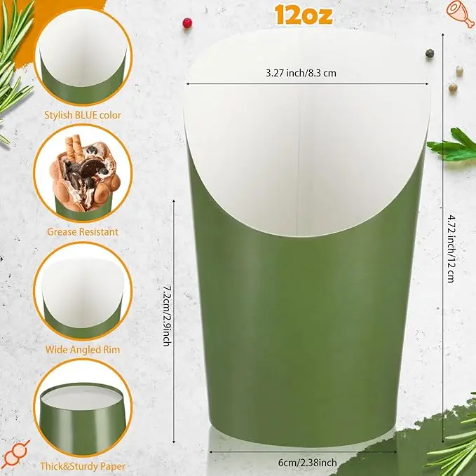 French Fries Holder, 12 oz Disposable Paper French Fries Cup, Birthday Pie Waffle Popcorn Deli Cup French Fries Cup