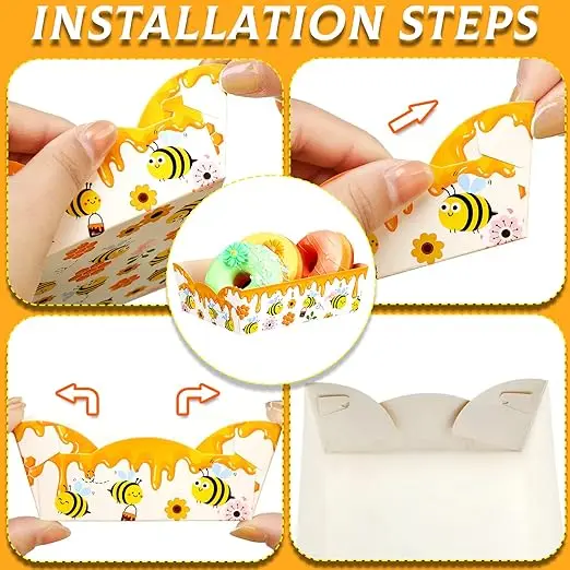Home » Products » Packs Bee Party Supplies Set Birthday Decoration Disposable Paper Food Tray Paper Food Boat Carnival, Fair, Festival