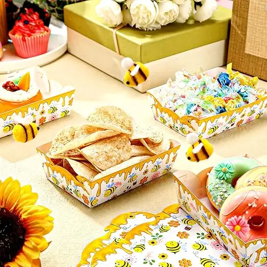 Packs Bee Party Supplies Set Birthday Decoration Disposable Paper Food Tray Paper Food Boat Carnival, Fair, Festival Packs Bee Party Supplies Set Birthday Decoration Disposable Paper Food Tray Paper Food Boat Carnival, Fair, Festival
