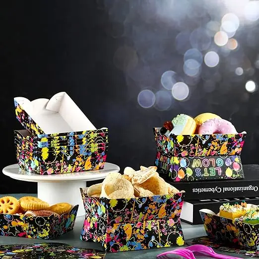 Home » Products » Packs of Neon Party Supplies, Decorations, Disposable Paper Food Plates, Paper Food Boats, Suitable for Carnival, Festivals