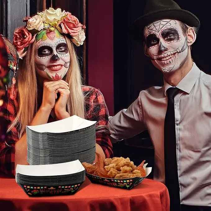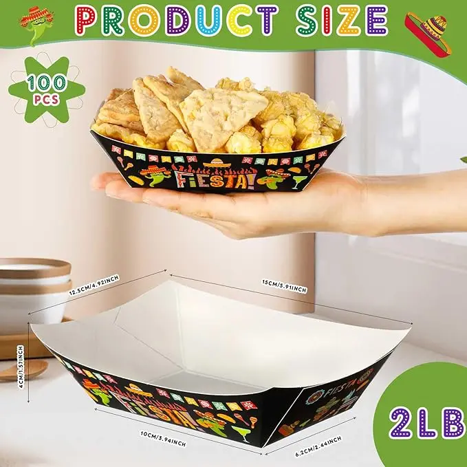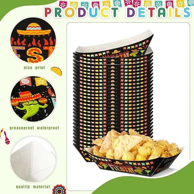 Paper Food Trays 2 lb Nachos Disposable Trays Mexican Theme Decorated Popcorn Tacos (Classic)