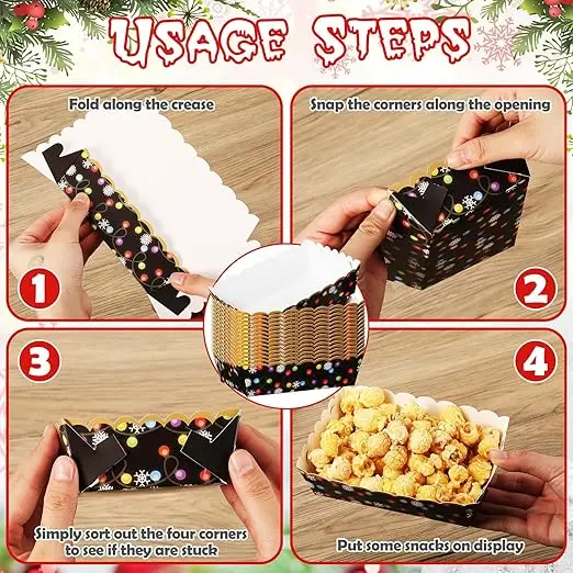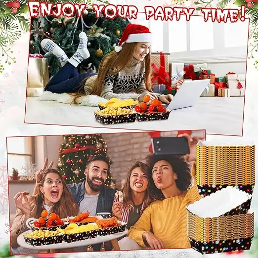 Paper Food Trays Christmas Plaid Lights Disposable Nachos Popcorn Hot Dogs Holiday Party Supplies (lively, Colorful) Paper Food Trays Christmas Plaid Lights Disposable Nachos Popcorn Hot Dogs Holiday Party Supplies (lively, Colorful)