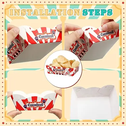 Pieces of Disposable Paper Food Tray for Carnival Party Decorations for Food Stalls, Condiments
